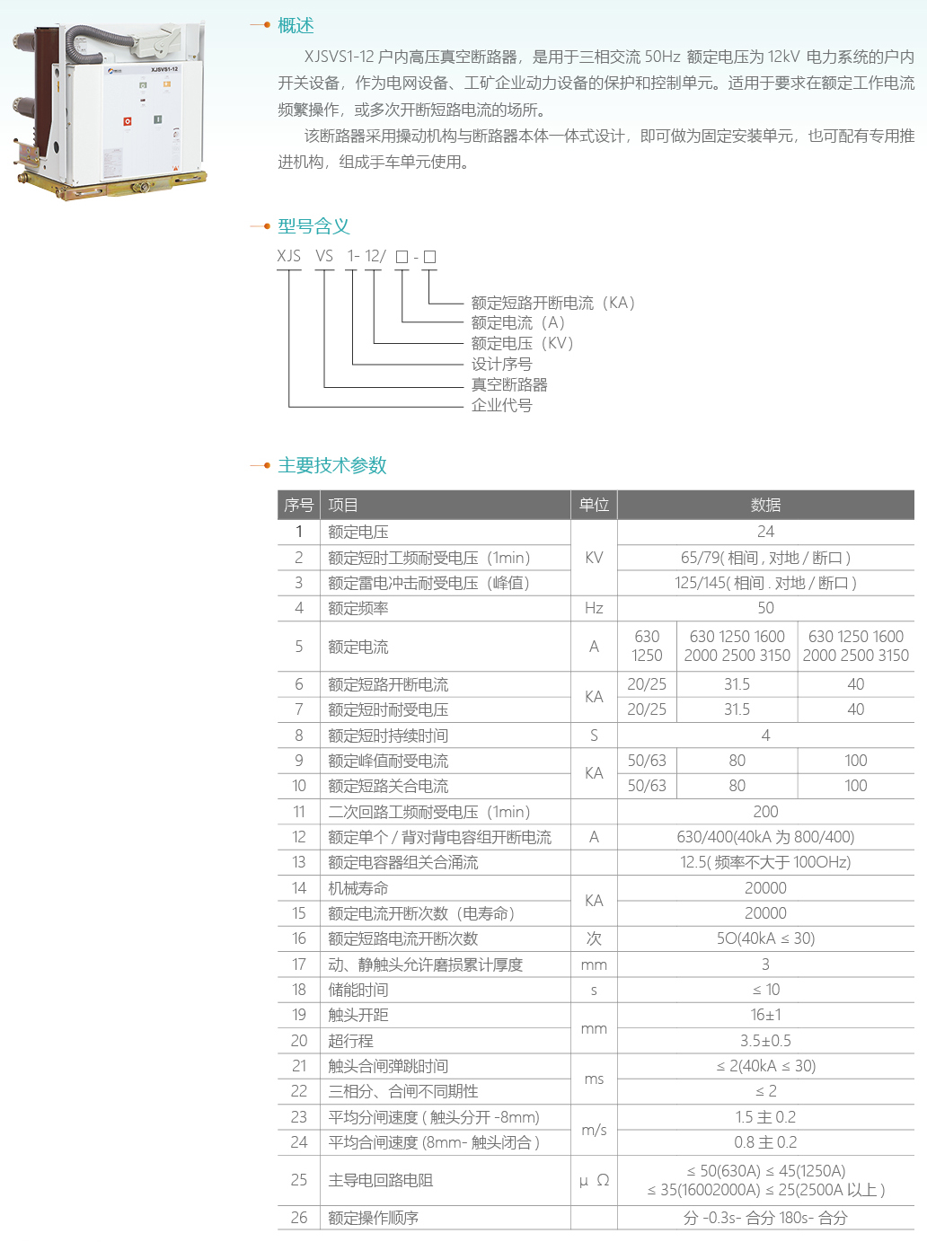 XJSVS1-12手車式戶內(nèi)高壓真空斷路器